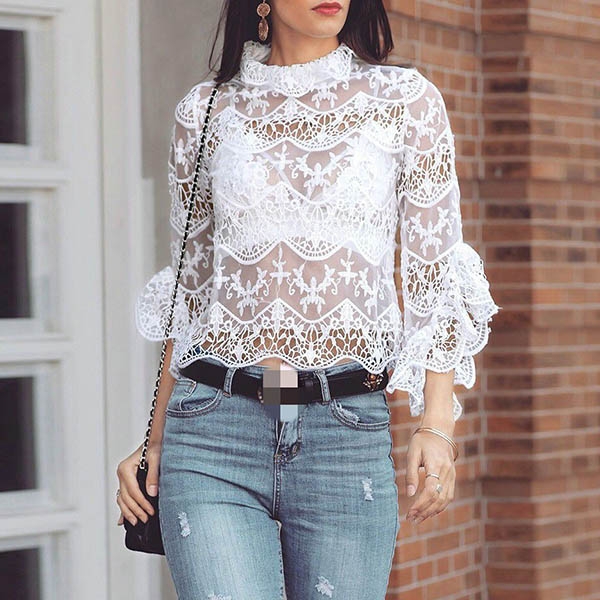 Exude your sexy and alluring feminine charm through this lace top. The see-through style design make