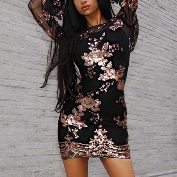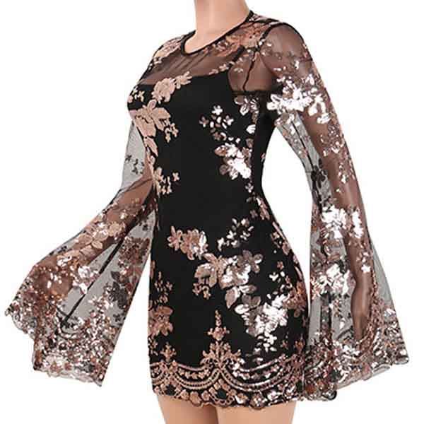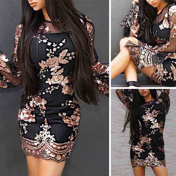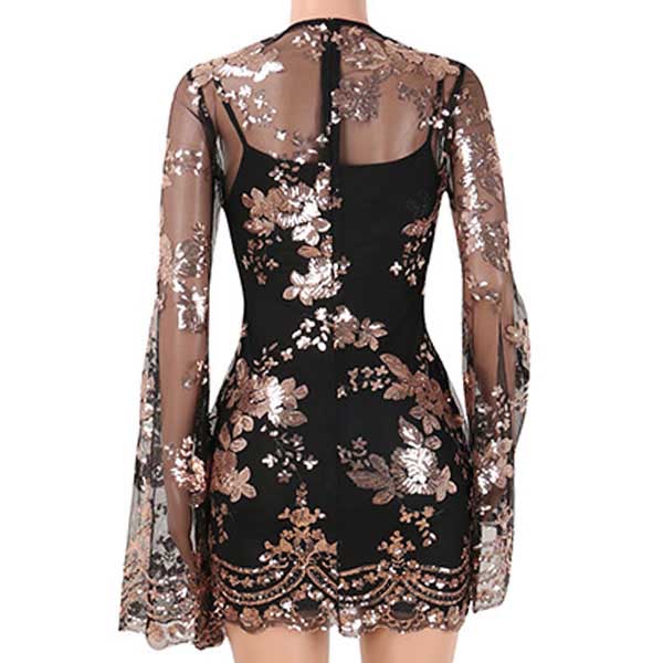 sleeve see-through sequin dress and a sling dress,this two-piece set can easily exude your feminine appeal