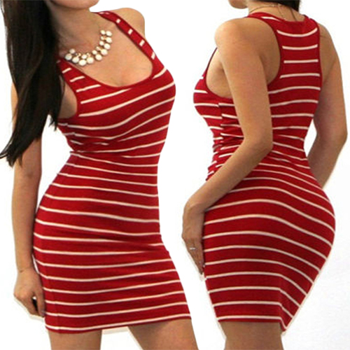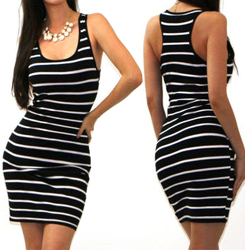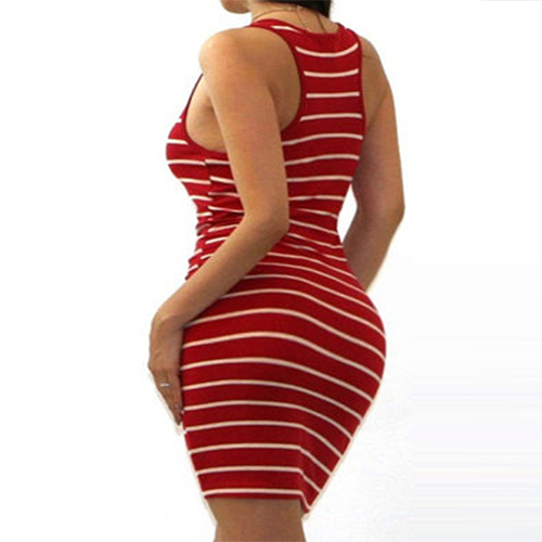 Add some classic elements to your stylish wardrobe with this sexy striped dress. Featuring u-neck,