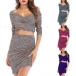 two-piece set. Striped style,including a 3/4 sleeve v-neck crop top and a high waist skirt,this