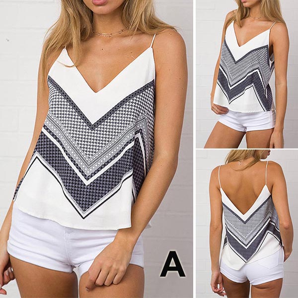 V-shape backless, cami straps. Matching a white shorts or denim shorts, you will effortless