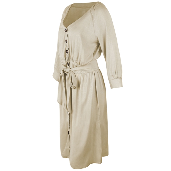 middle sleeve dress! This dress features a flowing silhouette with button-front design,