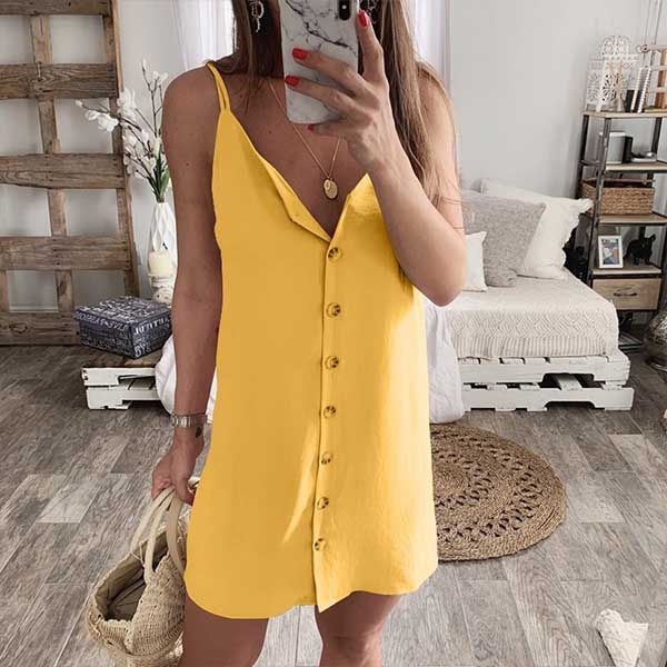 Exude a sense of femininity by donning this dress.Sling and v-neck design can showcase your sexy side,