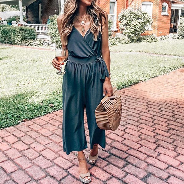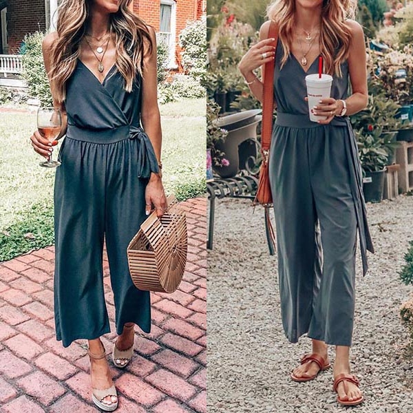 Summer style looks a lot like this sling jumpsuit:sexy and flirty! Sling style,with backless and v-neck design,this piece will exude your feminine side,while the high waist design will showcase your slender figure. Dress it up with your favourite heels for a beautiful appearance.