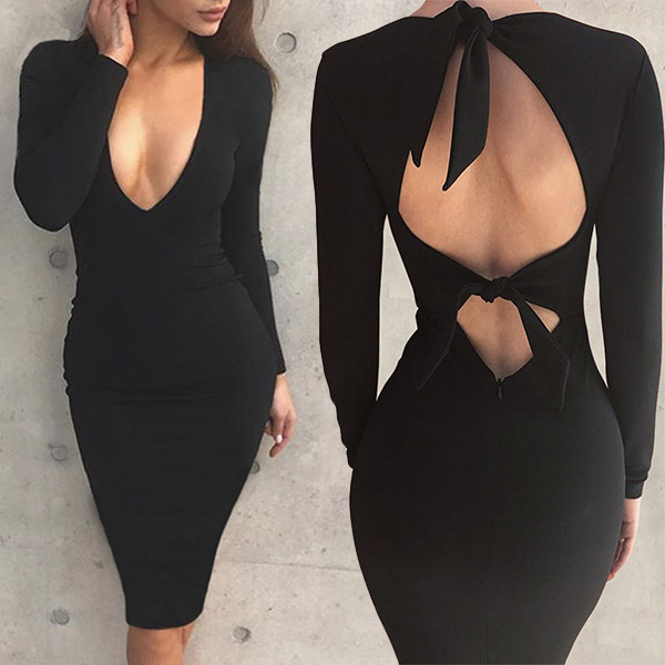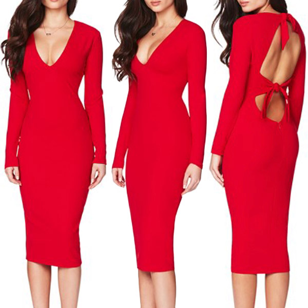 My lady,why you are so beautiful with dress? Solid color style, with v-neck and long sleeve,