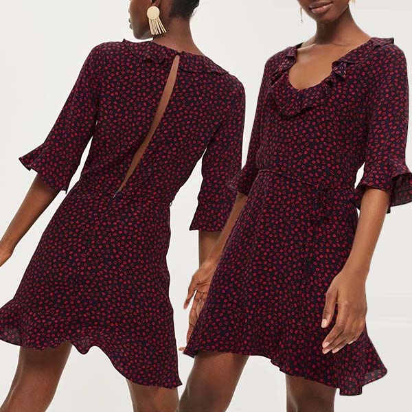 Contrast color style,with short sleeve and lotus hem design,which can decorate your seductive curve.