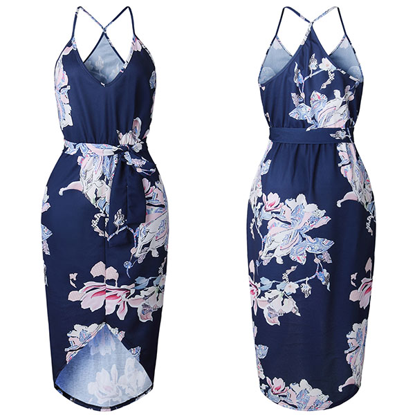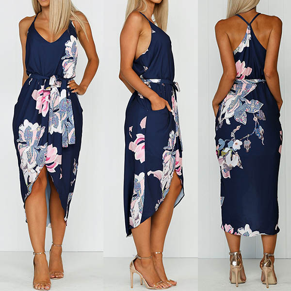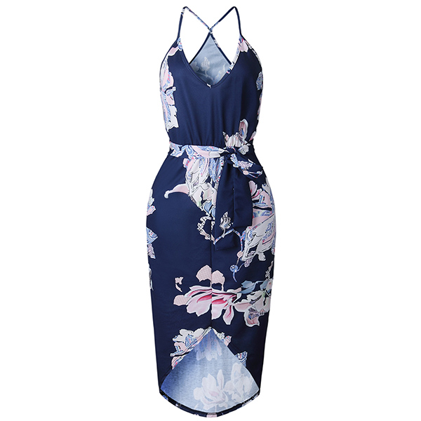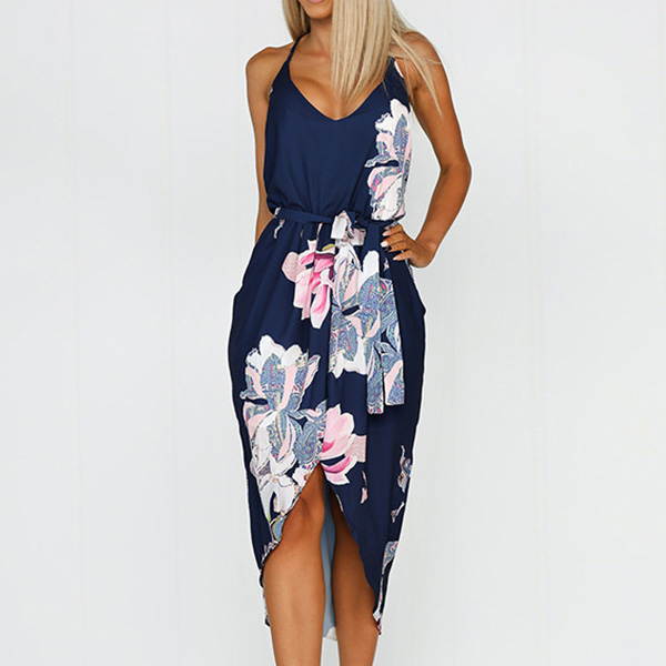 You look so beautiful and charming when you wear this printed dress. Sling style,the v-neck and irregular hem design