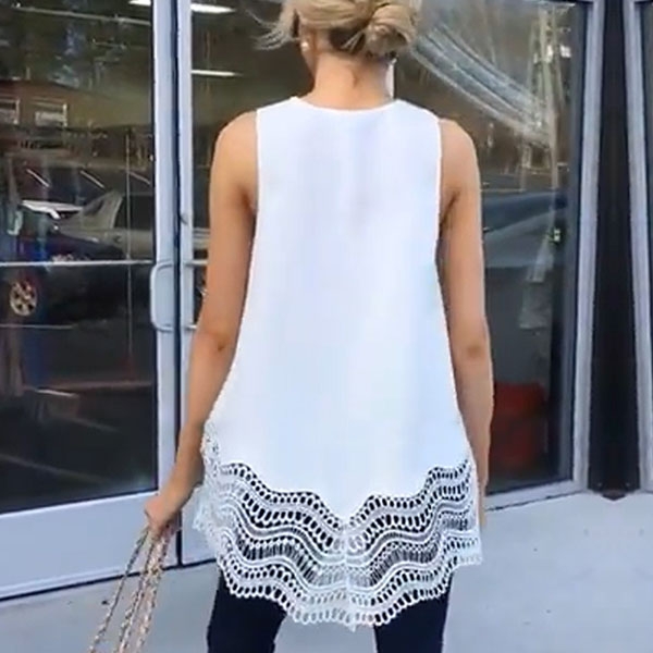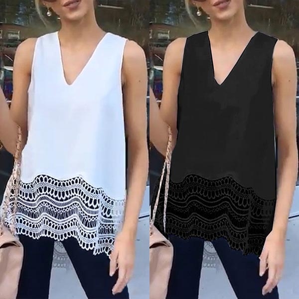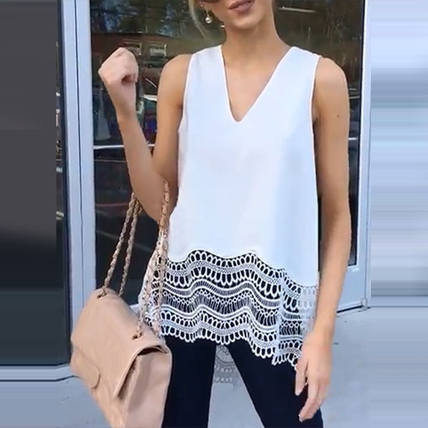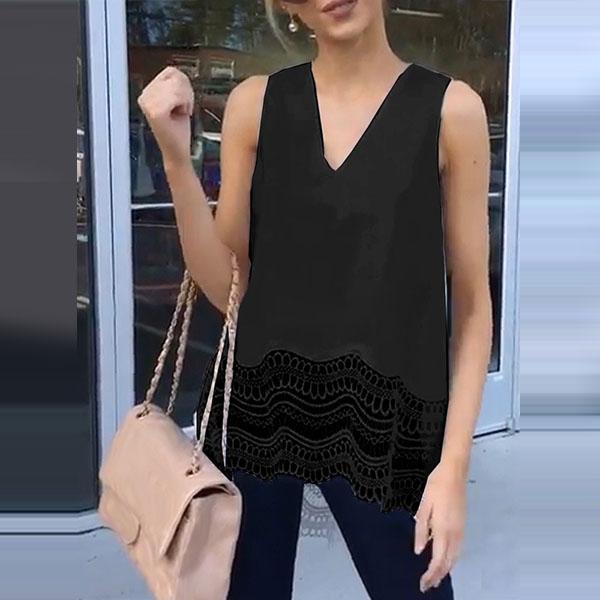 Crafted in a solid color,the v-neck and lace spliced hem design can enhance your femininity.
