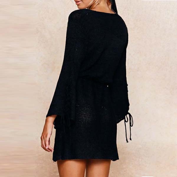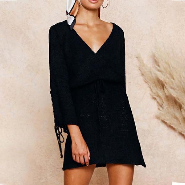 For the days when you feel a little cold,you can just slip into this knit dress. Solid color style,the trumpet