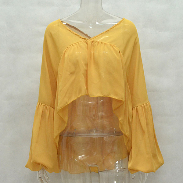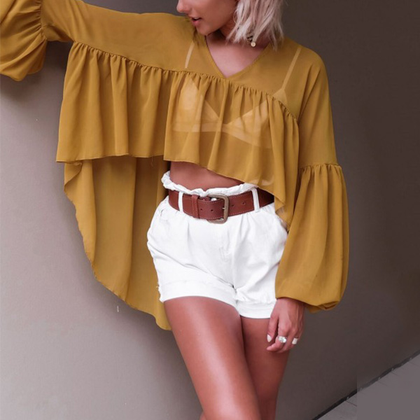 with v-neck,lantern sleeve and high-low hem,this wonderful piece is a good way to boost your style.