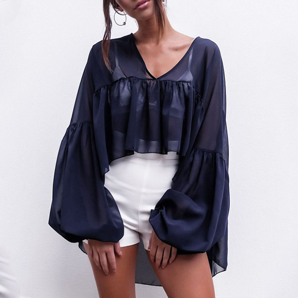 This sexy and unique chiffon top of course can help you win more eyes. Solid color style,designed