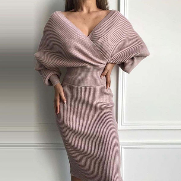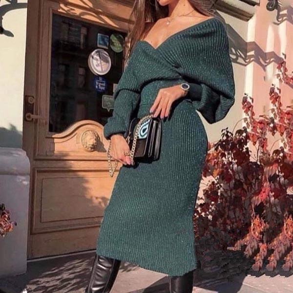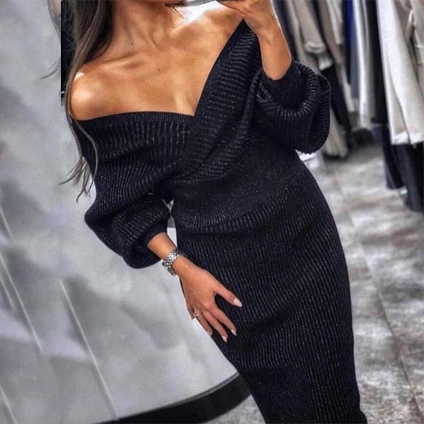 for an effortless charming and sexy look. Solid color style,including a v-neck lantern sleeve knit top
