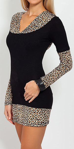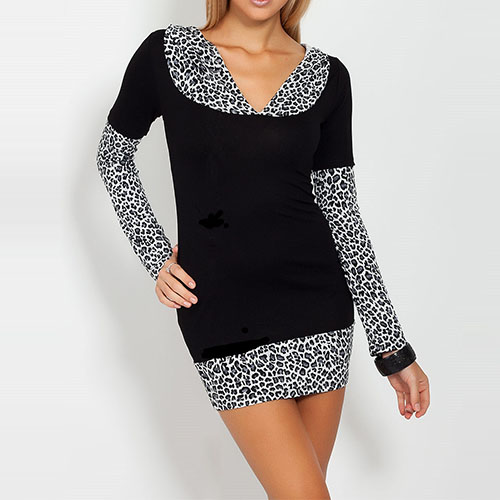 Effortlessly show off your sexy and charming style in this long sleeve dress!Leopard spliced style,