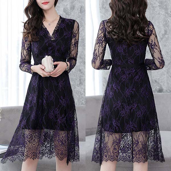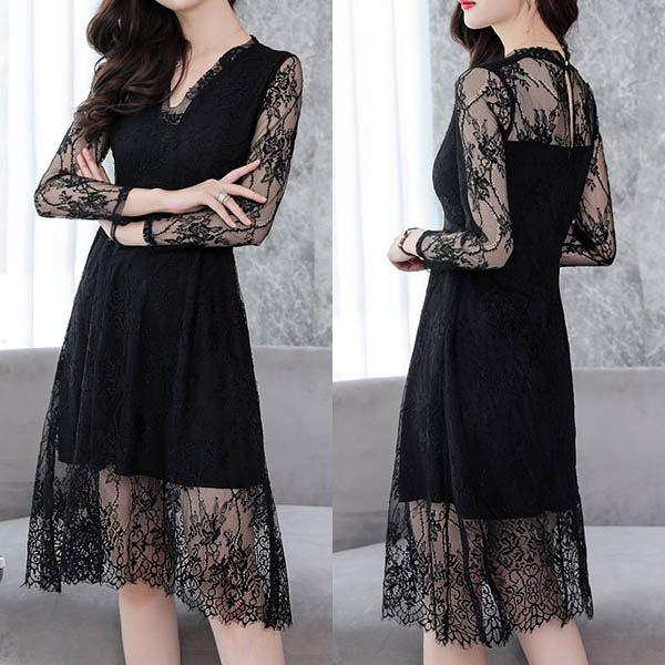 That's why we suggest you this beautiful lace dress! The see-through long sleeve and v-neck design