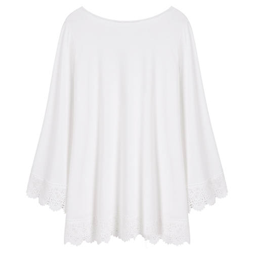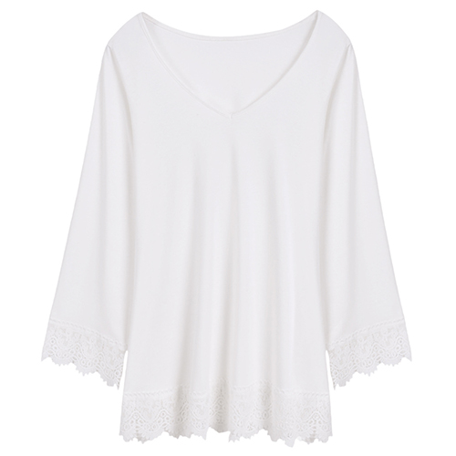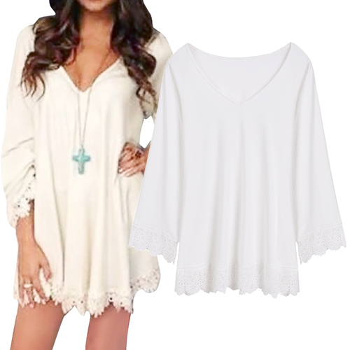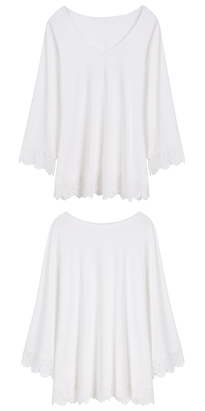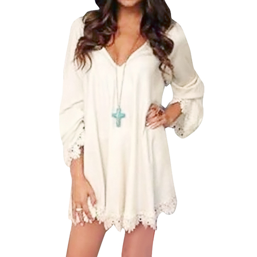 Sweet and charming,this dress features a solid color,with long sleeve,v-neck and lace spliced hem design.