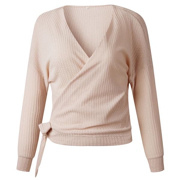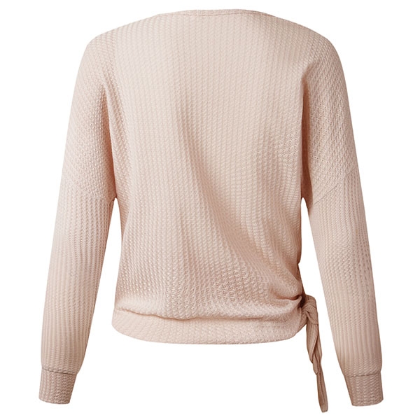 Solid color style,the v-neck and lace-up hem design make this piece look more attractive