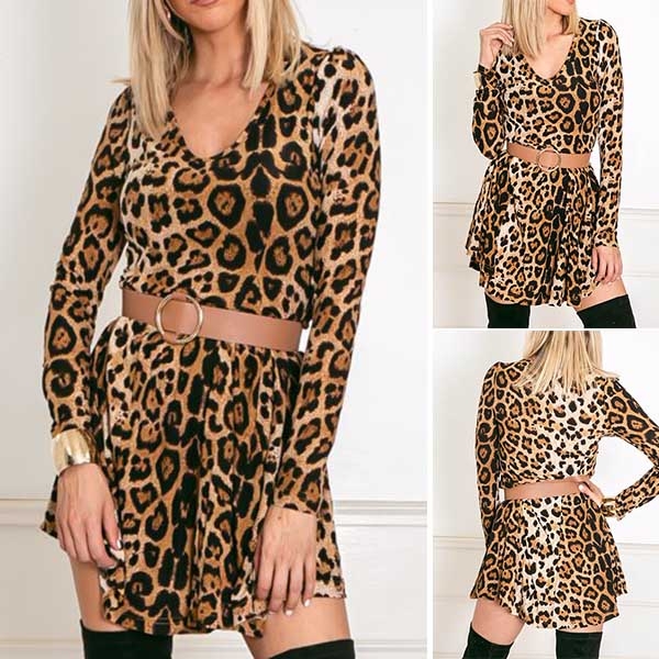 this dress? The leopard print details make it look so eye-catching,while the v-neck design can give you a sexier look.