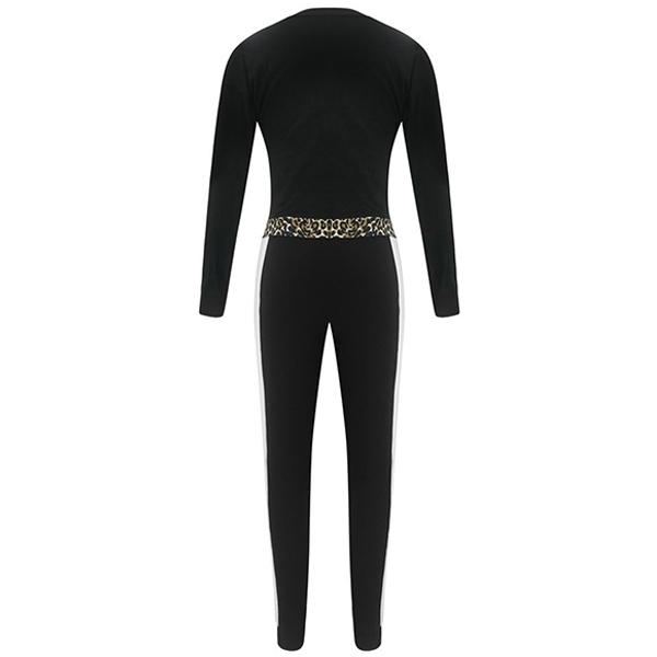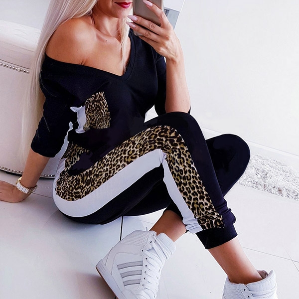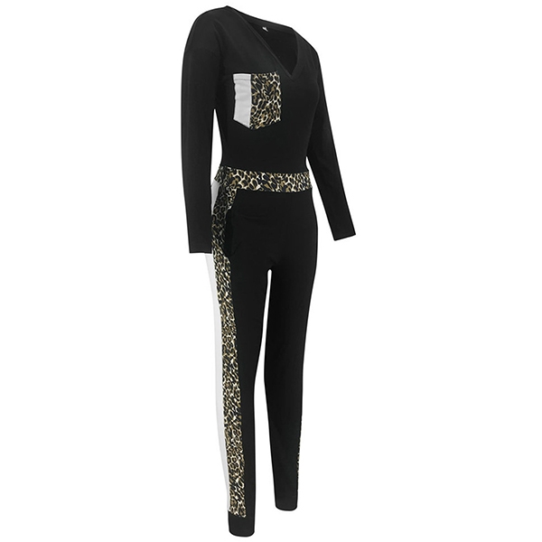 you this jumpsuit! It is finished with long sleeve,v-neck,high waist and leopard spliced design,