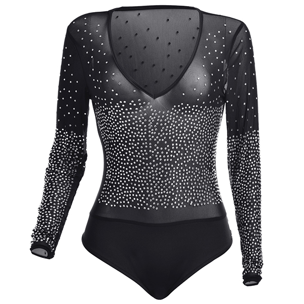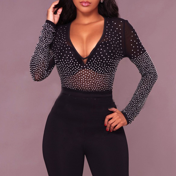 See-through style,with sequin details,sexy and eye-catching. We suggest you matching with your high waist