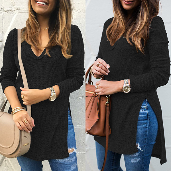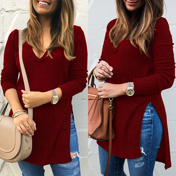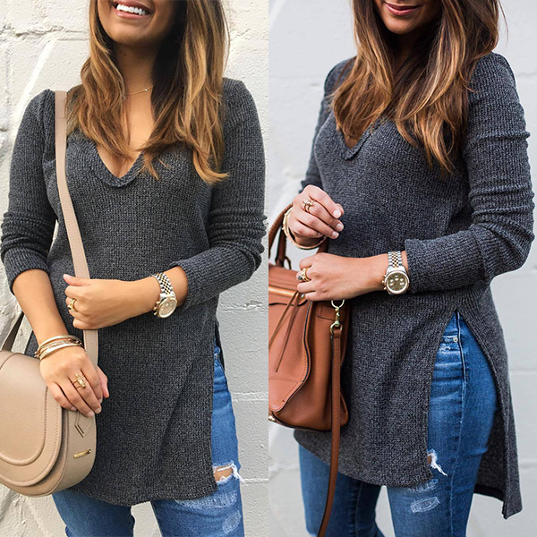 v-neck and slit hem,this wonderful piece can keep you warm,cozy yet feminine. If you like this style,then invite