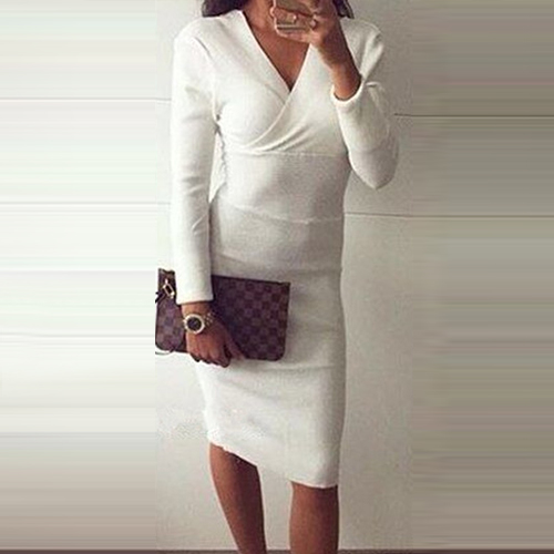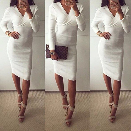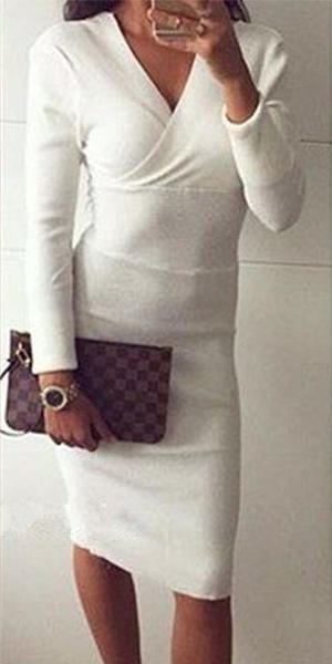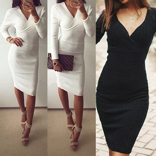 generous,while its v-neck and fit silhouette design makes this dress look more sexy and