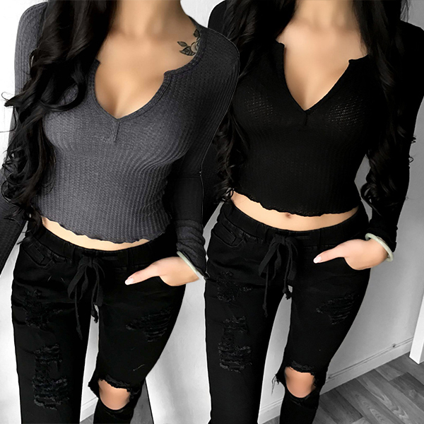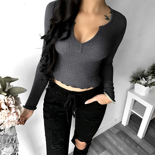It is styled with a solid color,long sleeve,v-neck and a fit silhouette,this little piece not only can keep you