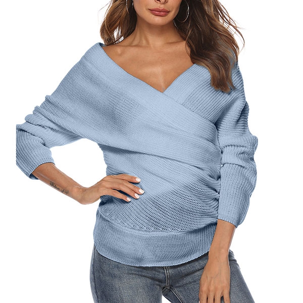 sleeve and crossover v-neck design,its soft and cozy knitted