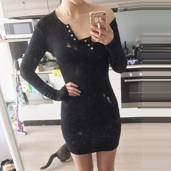 Solid color style,equipped with long sleeve,v-neck and a super fit silhouette,simple in design but filled with sexy and