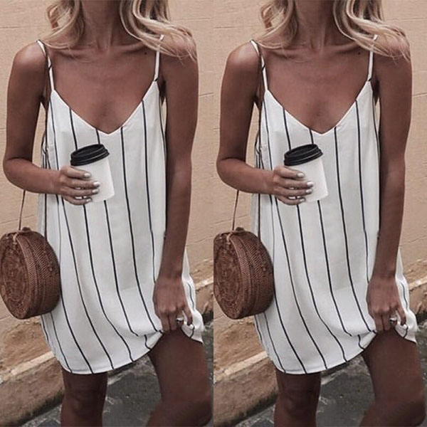 Striped style,the v-neck and sling design can give you a sexier look. Meanwhile,its soft fabric