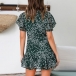 Features chic and eye-catching printed details,the v-neck and lotus sleeve design will further boost