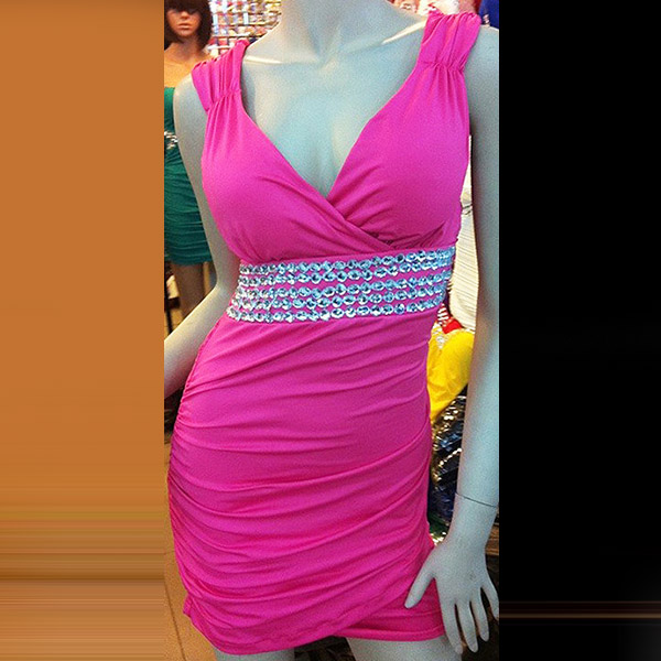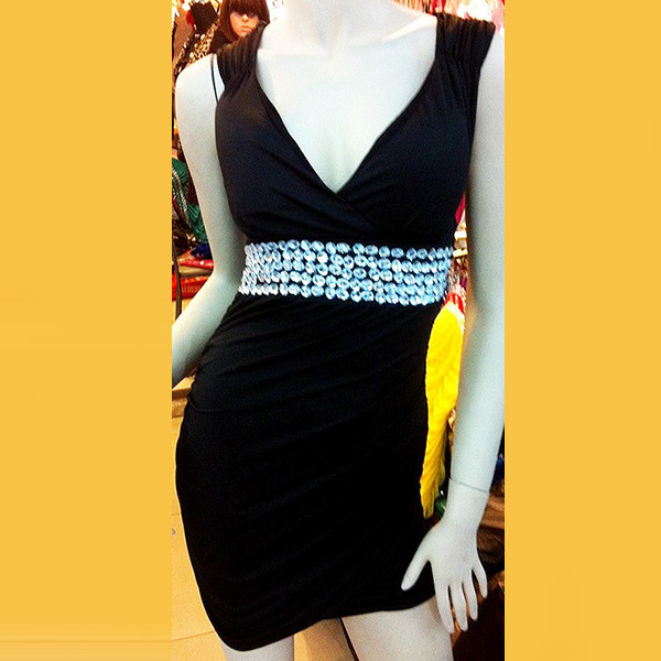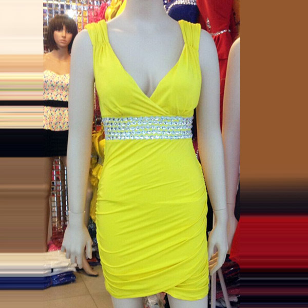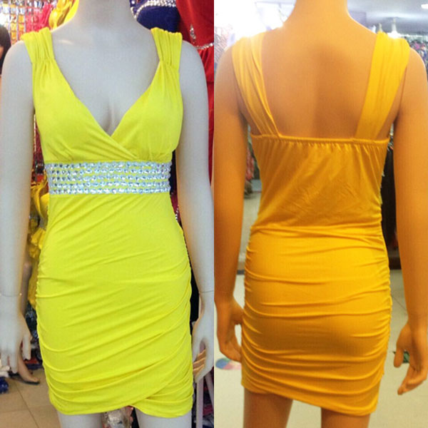 stunning details like backless,v-neck,irregular hem and rhinestone