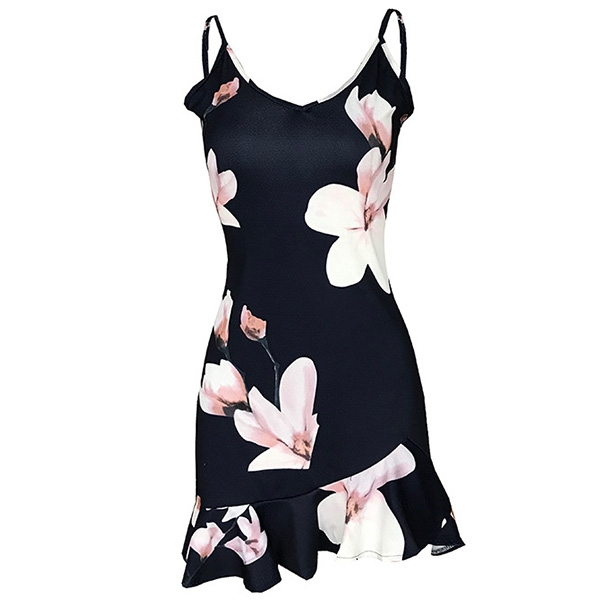 Sling style,with backless,v-neck and ruffle hem design,sexy yet alluring, You can trust in this dress
