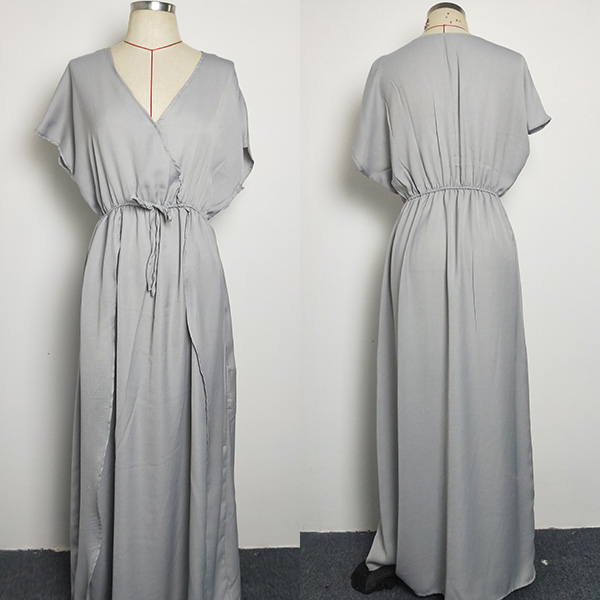 an elastic waist with self-tie accent, a short dolman-sleeve, a split hem with tulip overlay accent. Just need to