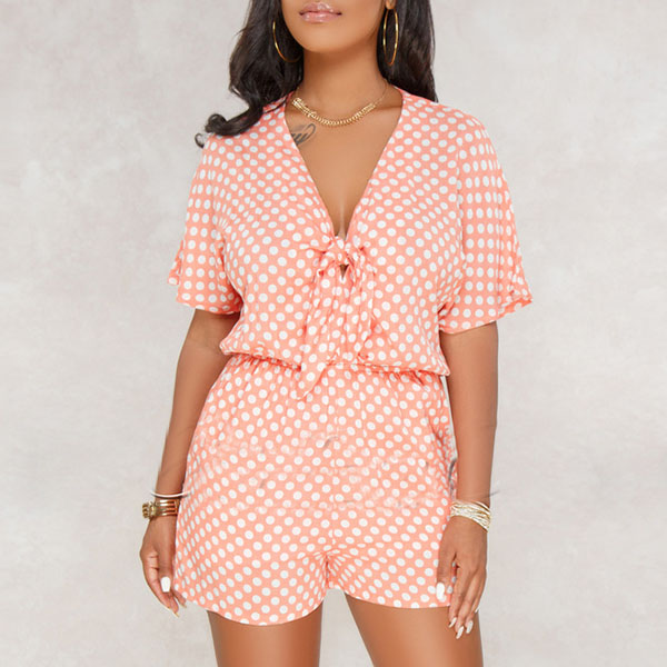 instant fashion style. Dots printed design makes this piece look so playful,while the deep v-neck design