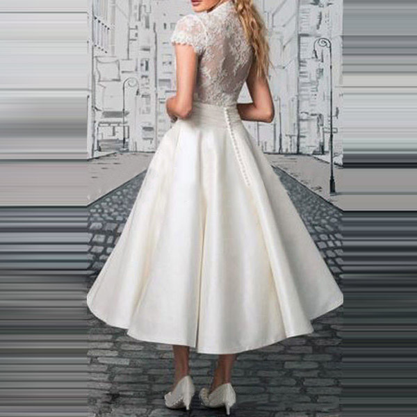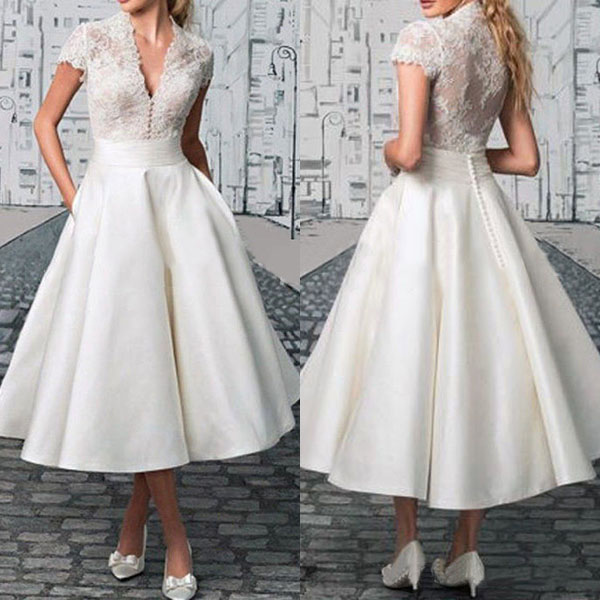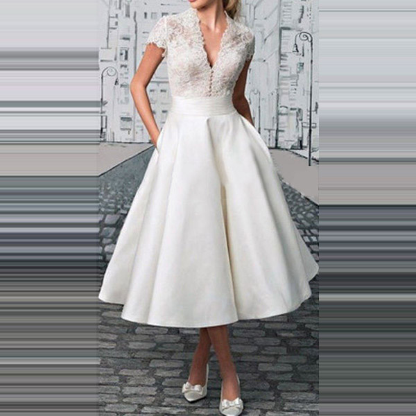 parties,and this pretty number would be a good choice. The lace spliced and v-neck design can exude