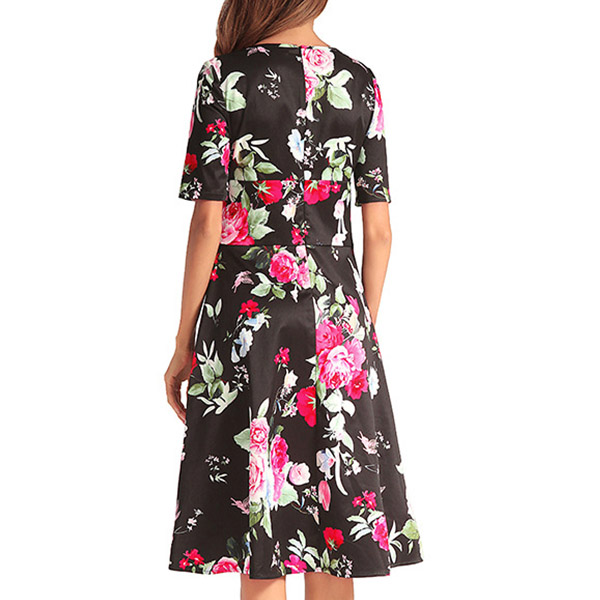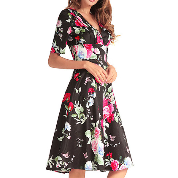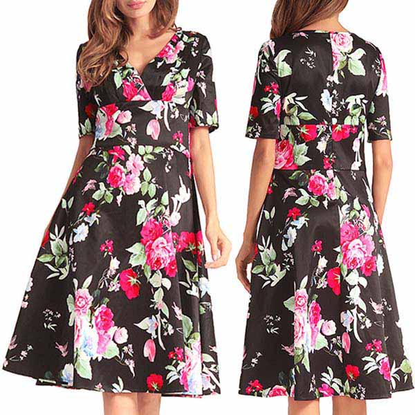 have one? This dress boasts vibrant floral print,with short sleeve,v-neck and high waist dress,which can