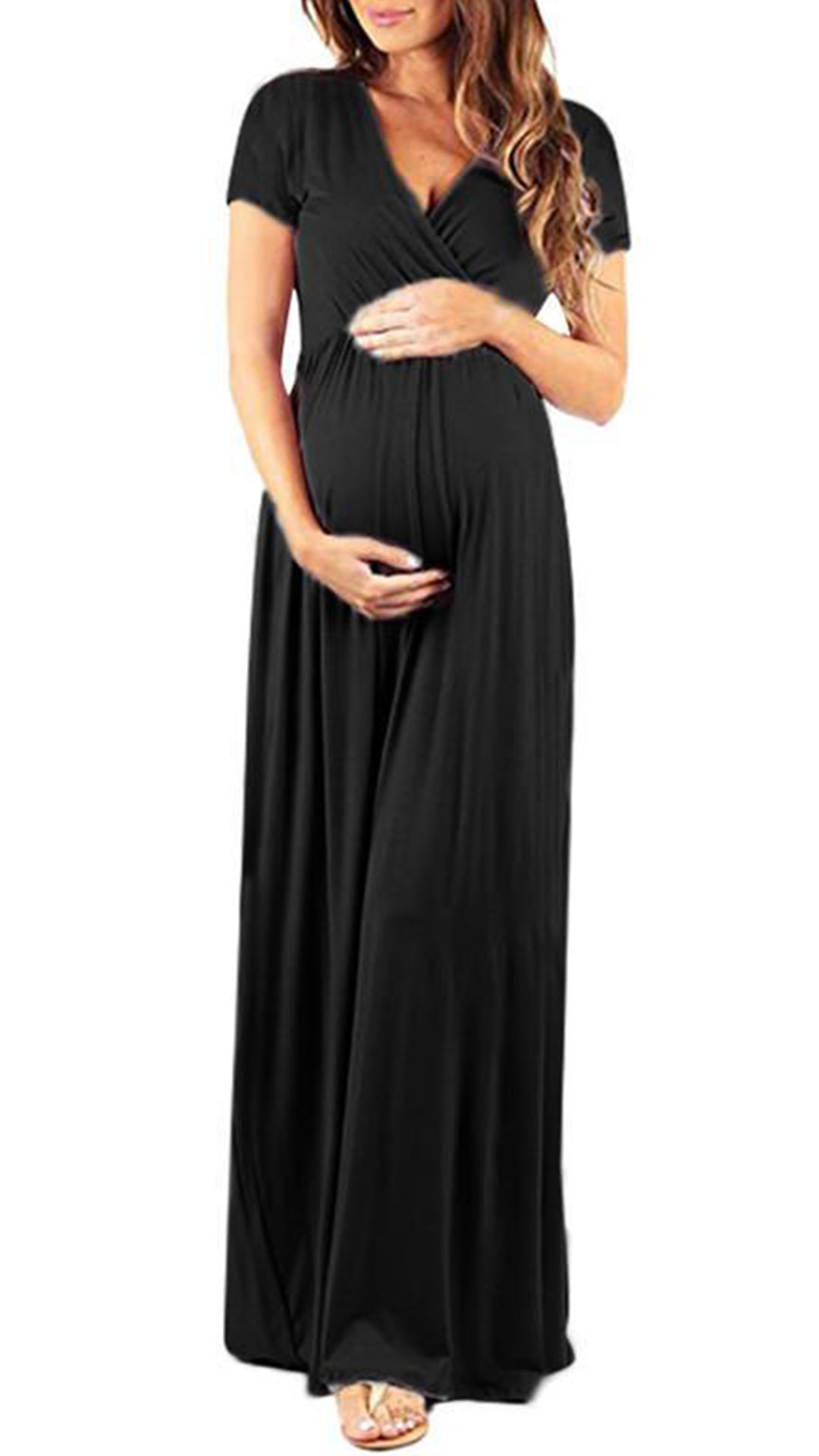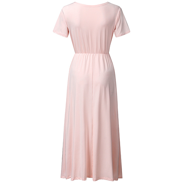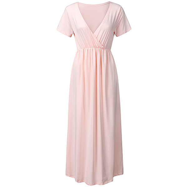 Sexy V-neck Short Sleeve High Waist Solid Color Maternity Dress
