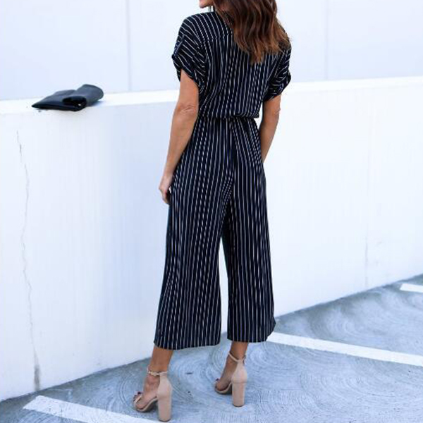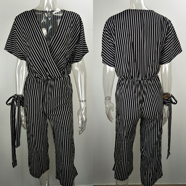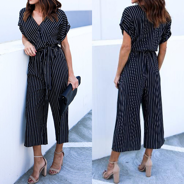 A cool way to update your daily style? Of course through this jumpsuit! Striped style,the v-neck design can lend