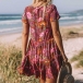 In these hot days,this dress is one of your best choices.It comes with v-neck,short sleeve and printed design,