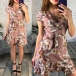 floral print,with short sleeve,v-neck and ruffle hem design,this dress can make any girl look effortless