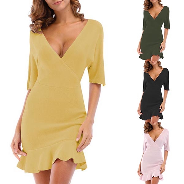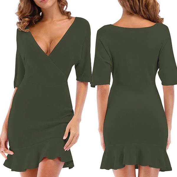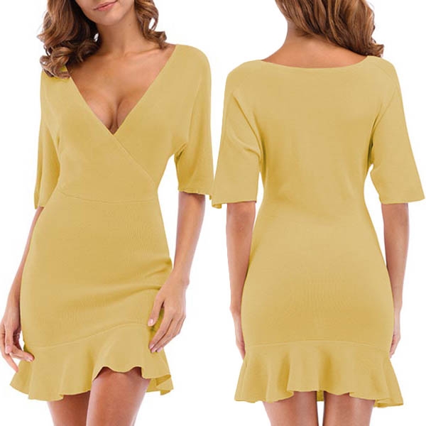 The solid color tone design makes this piece look simple yet generous,while the v-neck and ruffle hem design