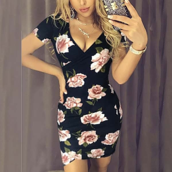 with short sleeve,v-neck and a fit silhouette,this dress also can highlight your slender figure.