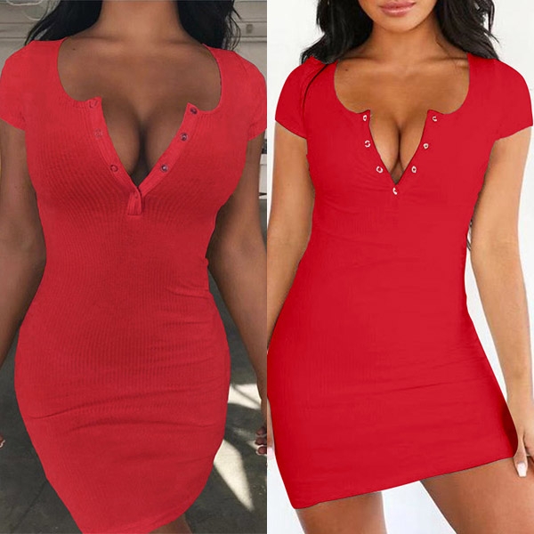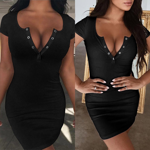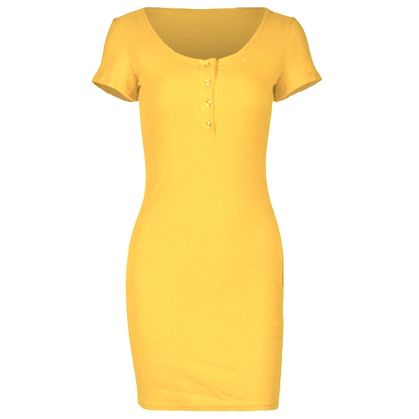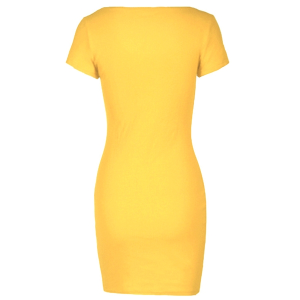 Crafted in a solid color,finished with short sleeve and v-neck design,this dress not only can