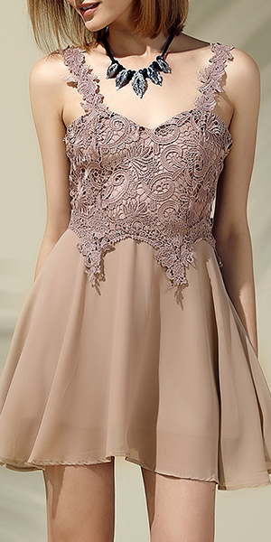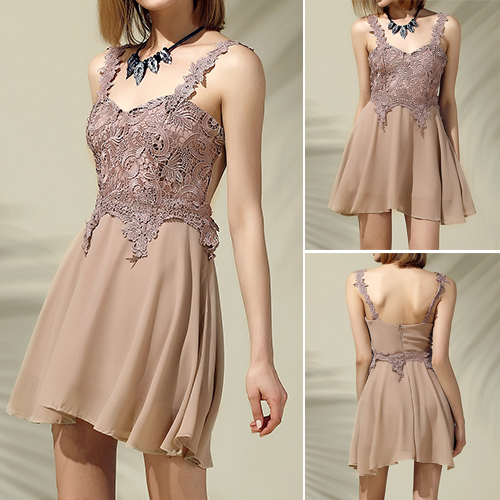 With v-neck, backless and sleeveless design, exquisite lace spliced design makes it more