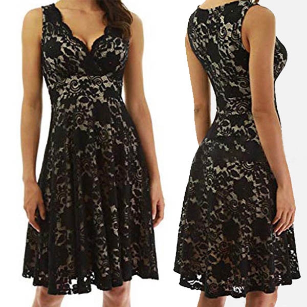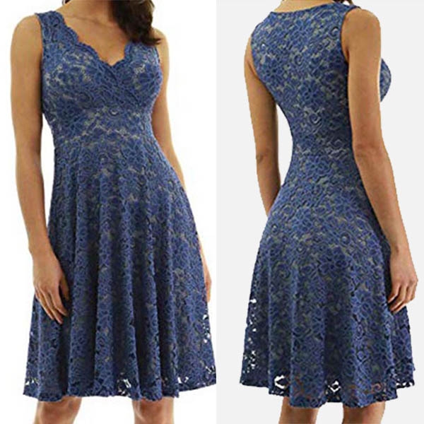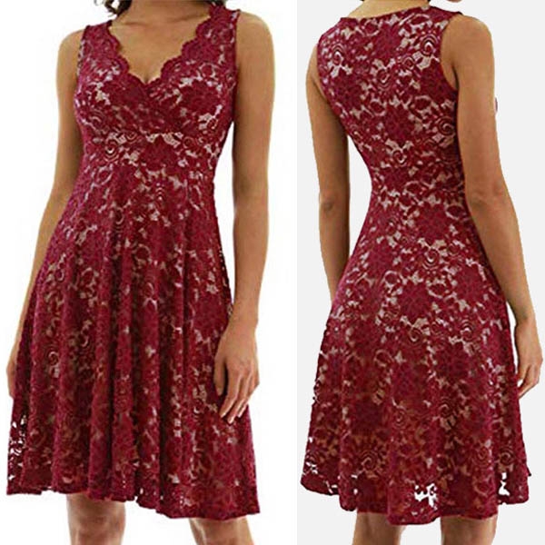 Your wardrobe is not complete if without a lace dress. It is finished with sleeveless,v-neck and high