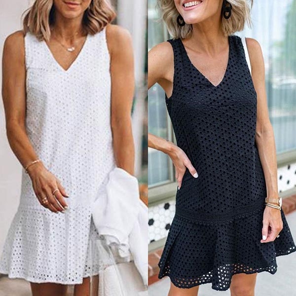 Exude your charming feminine appeal through this lace dress.It comes with v-neck,sleeveless