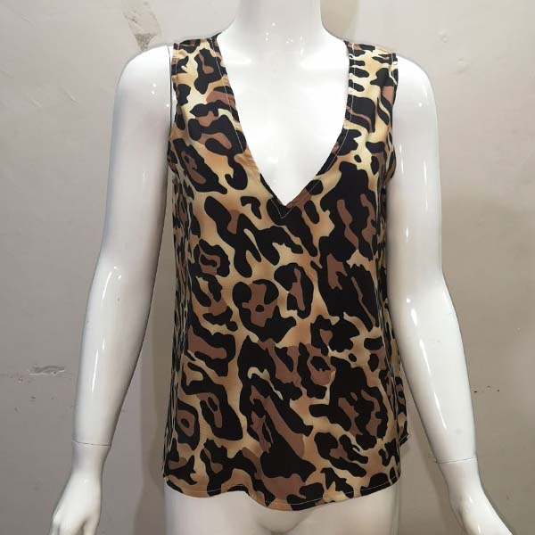 The v-neck design will further exude your charm. Finished with sleeveless and leopard printed details,