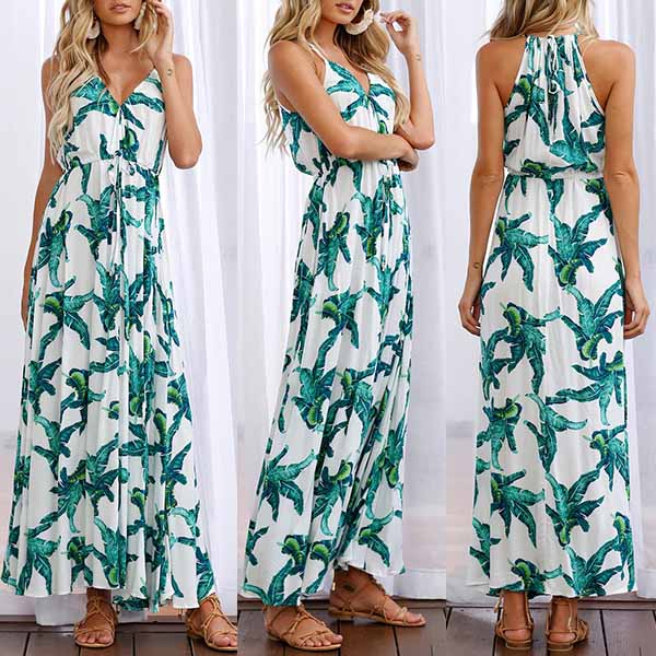 Boasts chic and eye-catching printed pattern,the v-neck and slit hem design make this sling dress look
