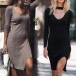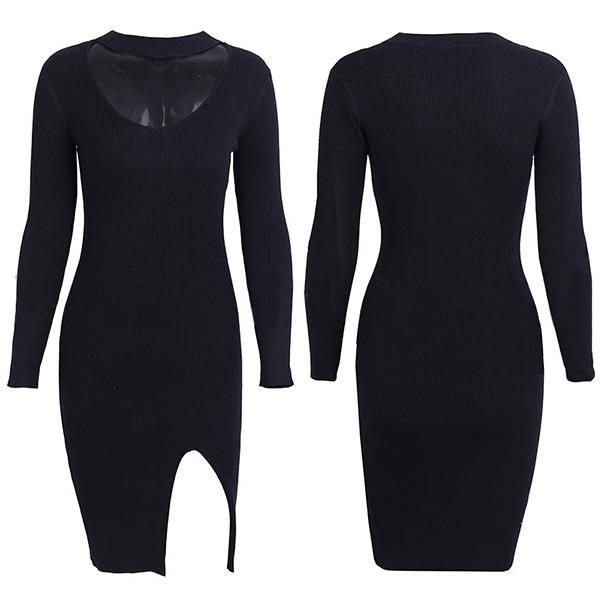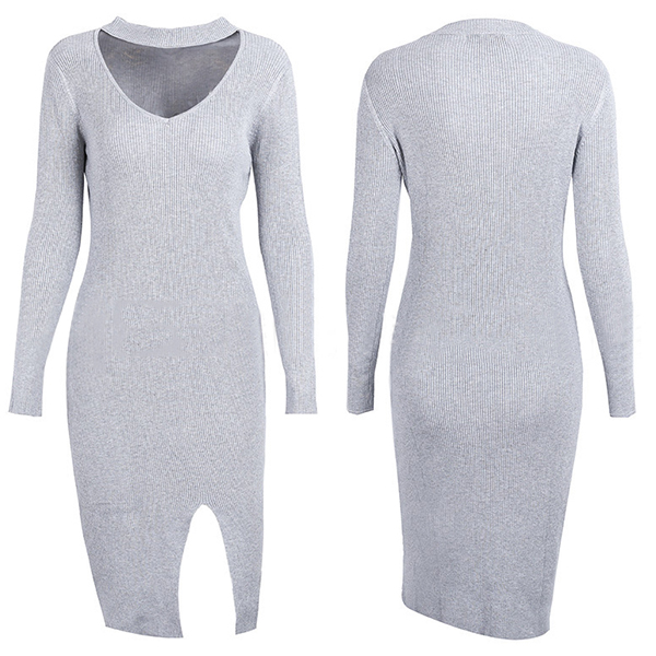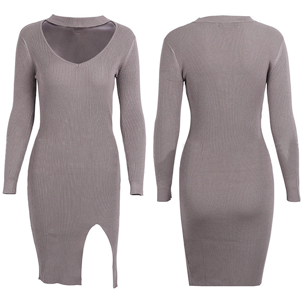 long sleeve,v-neck and a slit hem,cozy yet sexy. On the other hand,the fit silhouette design can cultivate your