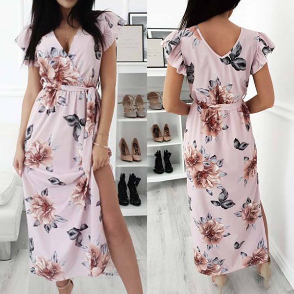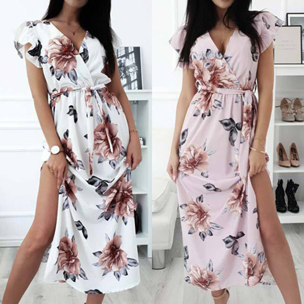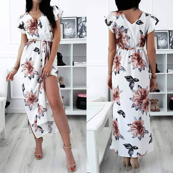 designed with lotus sleeve and slit hem,sweet and alluring. For your tropical getaways or garden parties,